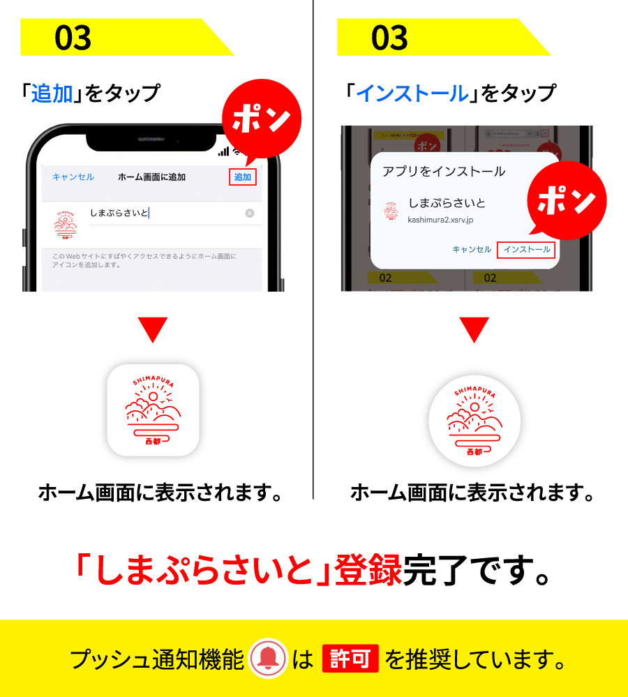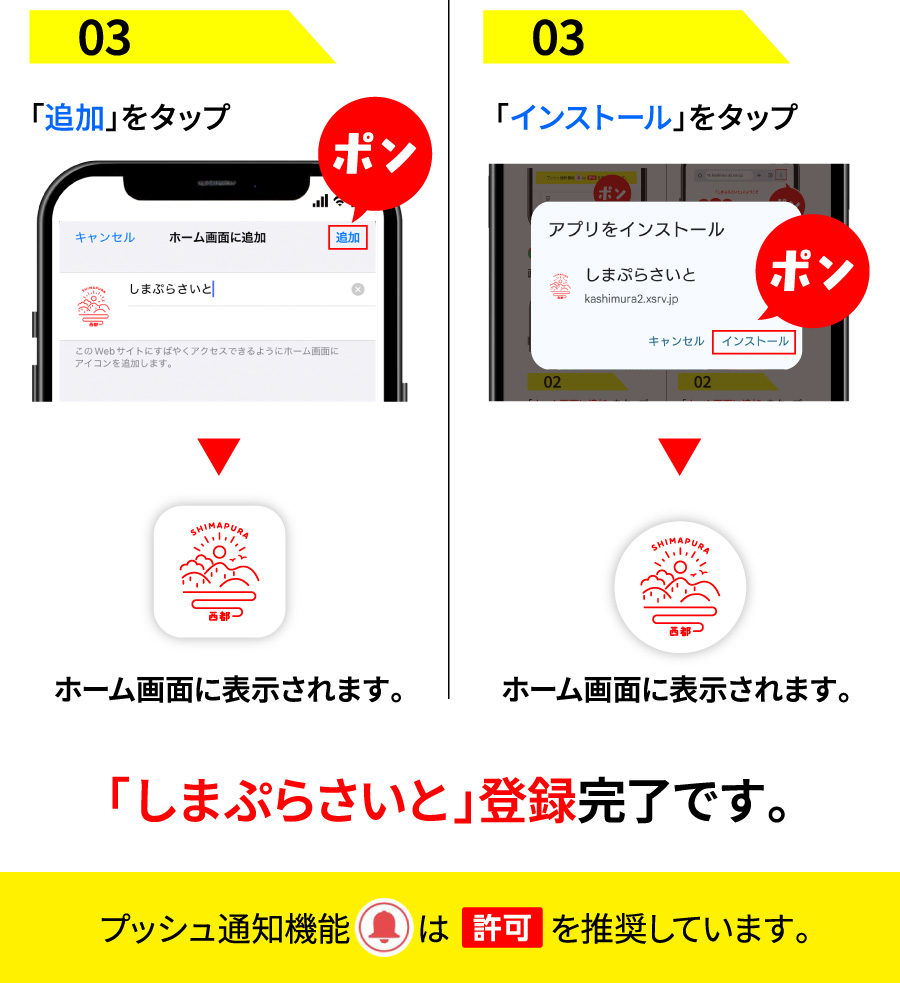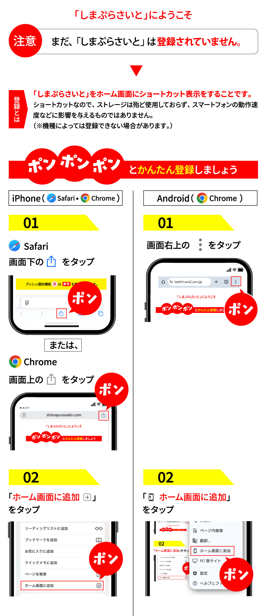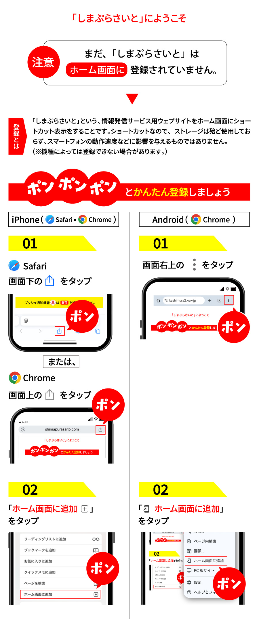 しまぷらさいとをホーム画面に追加して、簡単アクセス!